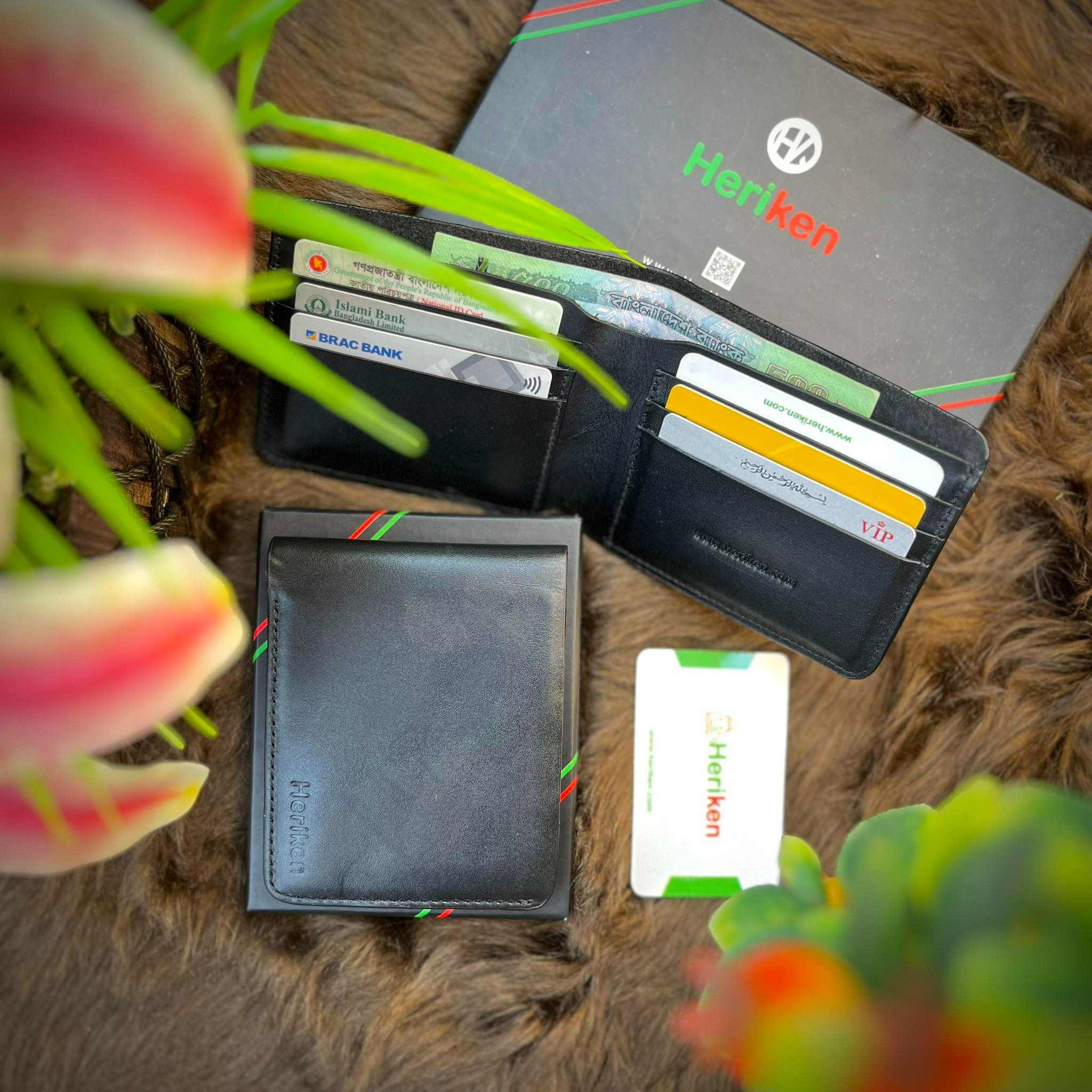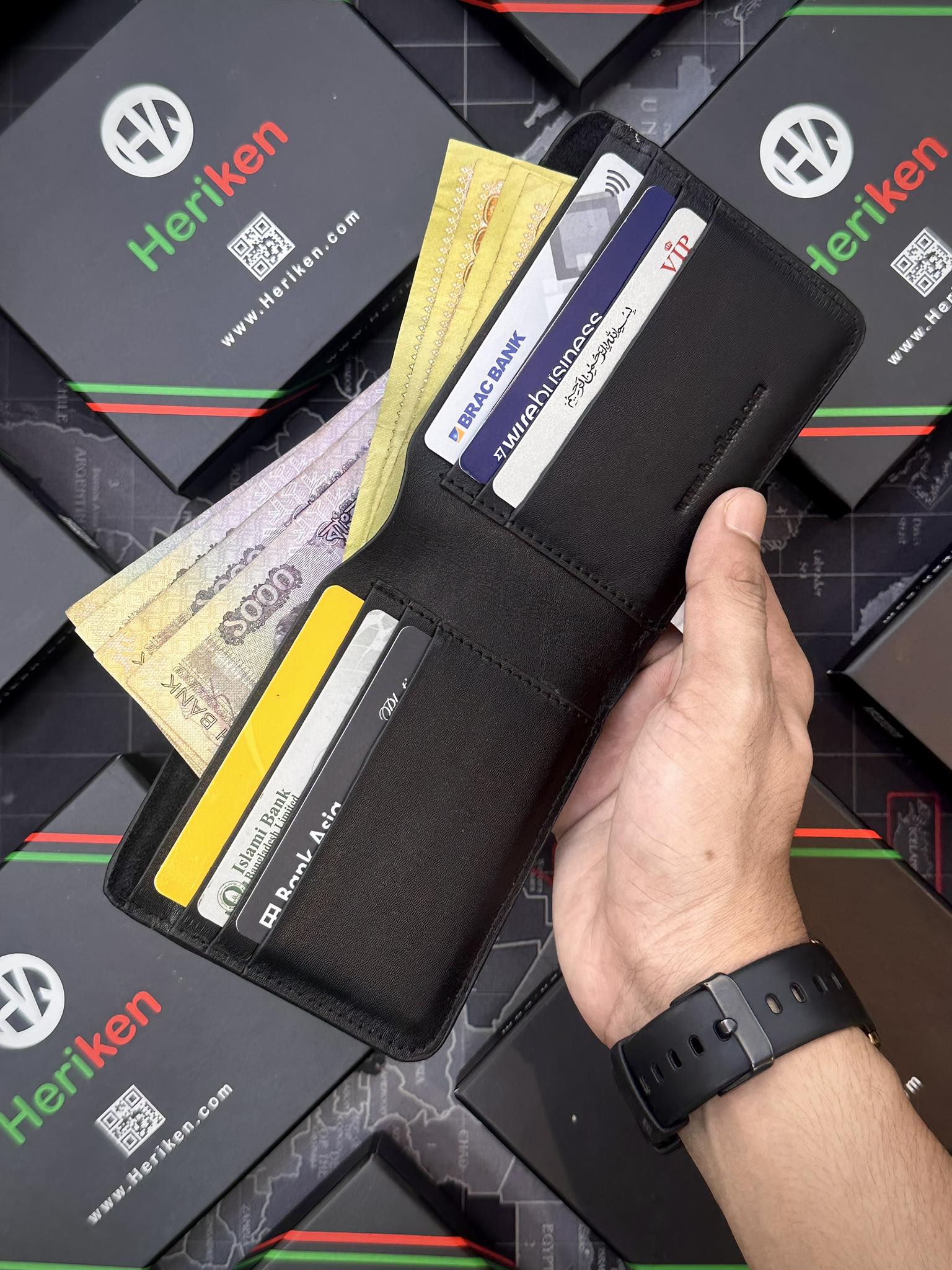 ✅১০০% খাঁটি চামড়ার এলিগেন্ট ব্ল্যাক মানিব্যাগ।