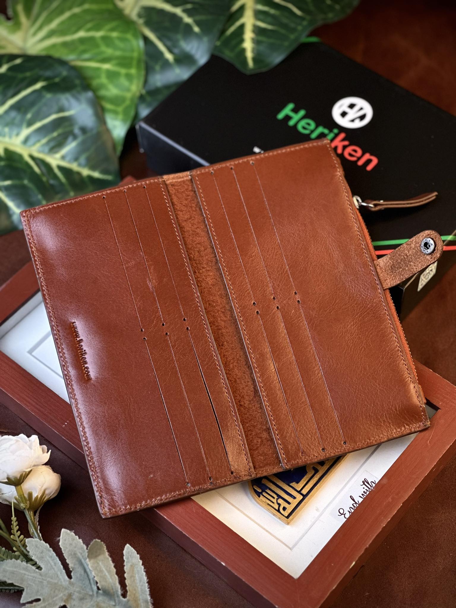 ✅এক্সপোর্ট কোয়ালিটির ওয়েল পুল আপ লেদার দিয়ে ক্রাফট করা প্রিমিয়াম লুকিং Premium Oil Pull Up Leather Long Wallet (Red Brown) ওয়ালেটটি শৌখিনতার প্রতীক।